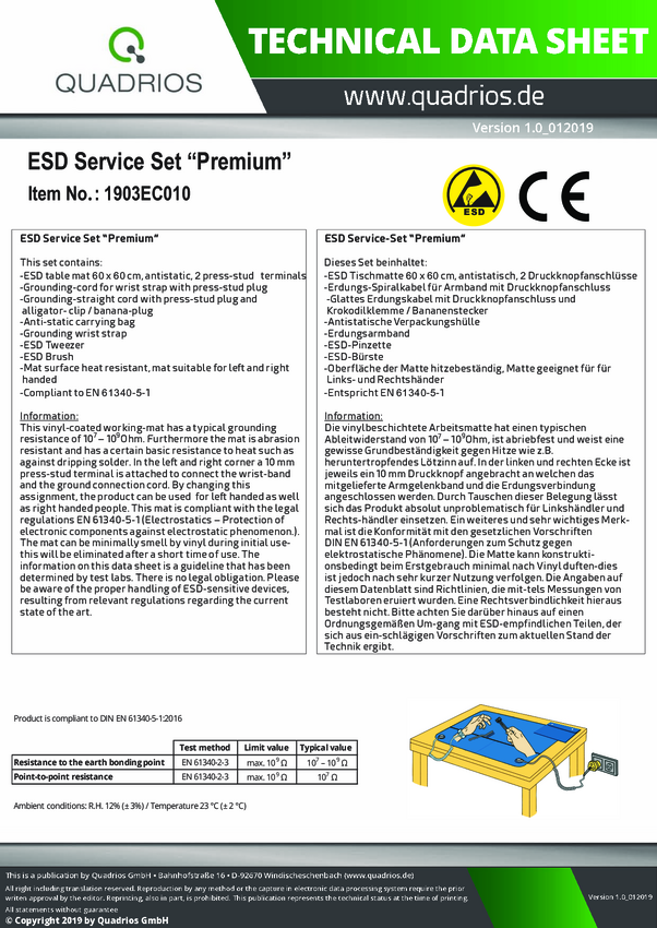 1903EC010 Zestaw serwisowy ESD Quadrios 1903EC010 1903EC010 (D x S) 600 mm x 600 mm