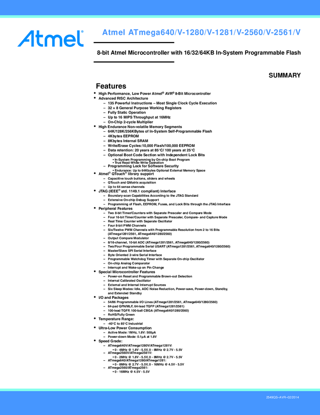 ATMEGA2561-16AU Mikrokontroler; układ scalony; IC; ATMEGA2561-16AU; Flash: 256kB; SRAM: 8kB...
