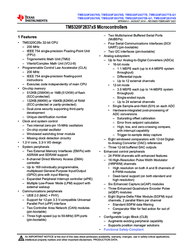 TMS320F28375SPTPT Układ scalony; TMS320F28375SPTPT; mikrokontroler MCU; RAM:164kB; Flash:1MB;...