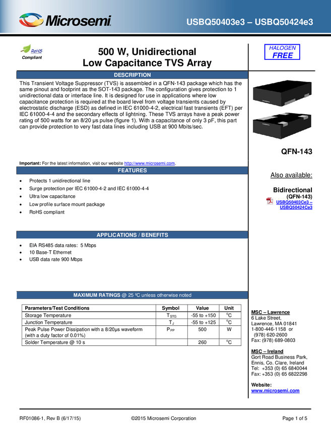 USBQ50424-e3 USBQ504 Unidirectional TVS Family Datasheet