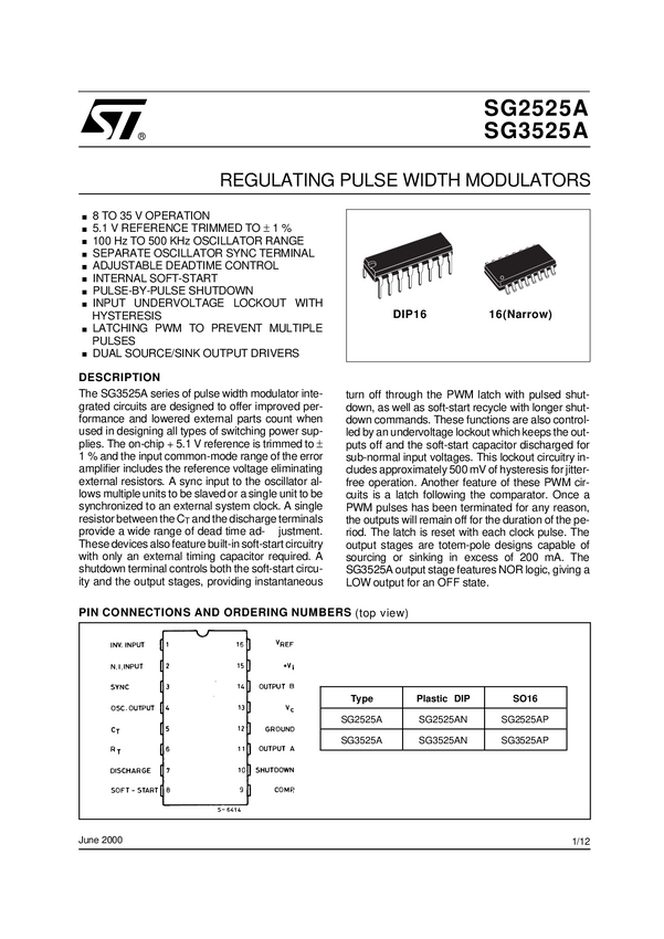 Układ scalony; SG3525AP013TR; driver; kontroler PWM; 100mA; 5V; 2 kanały; 8-35V; SO16; SMD; KS3525; STMicroelectronics; RoHS