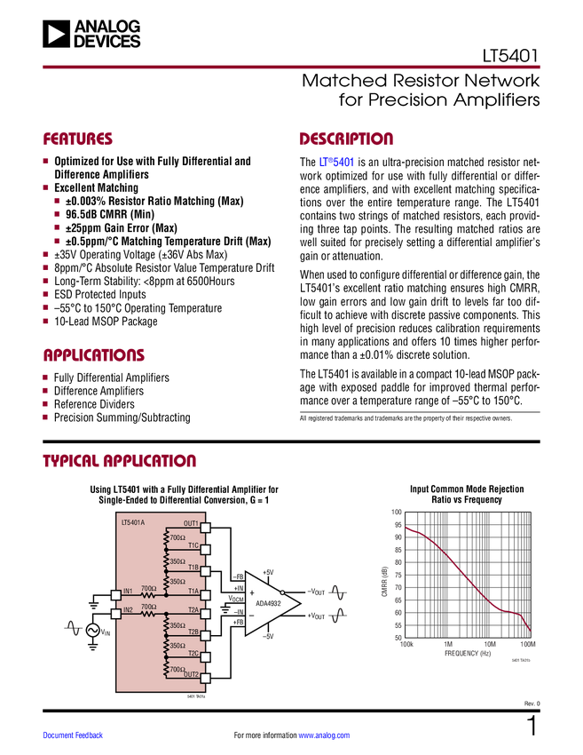 LT5401 Matched Resistor Network for Precision Amplifiers