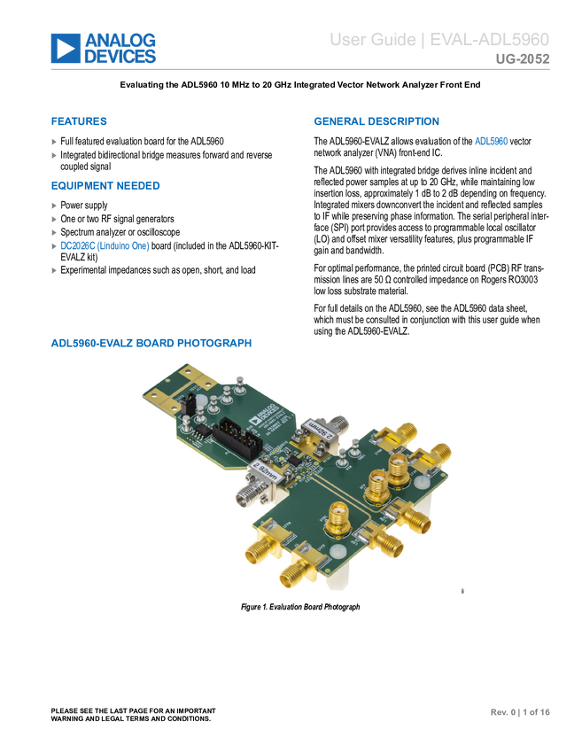 ADL5960 10 MHz to 20 GHz Integrated Vector Network Analyzer Front End