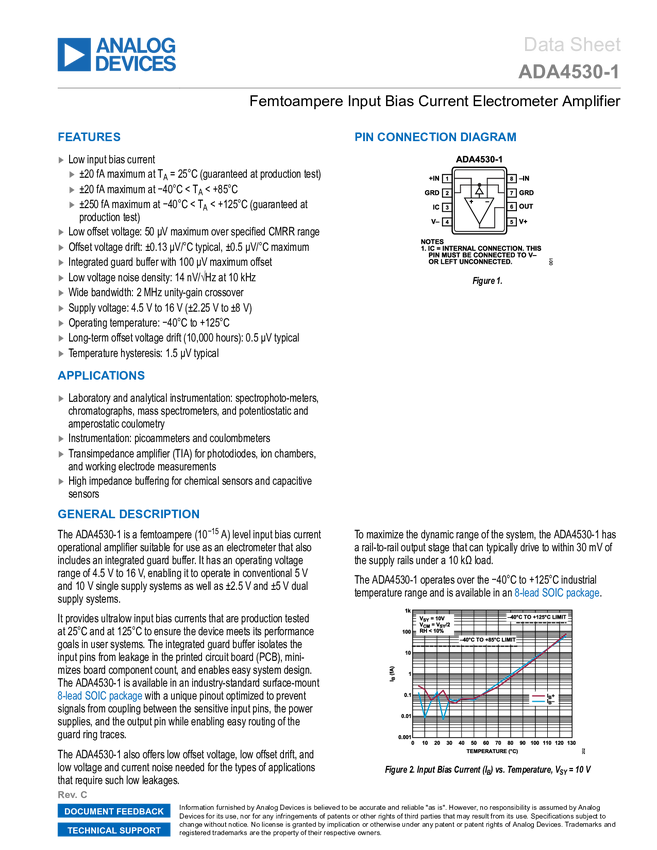 ADA4530-1 Femtoampere Input Bias Current Electrometer Amplifier