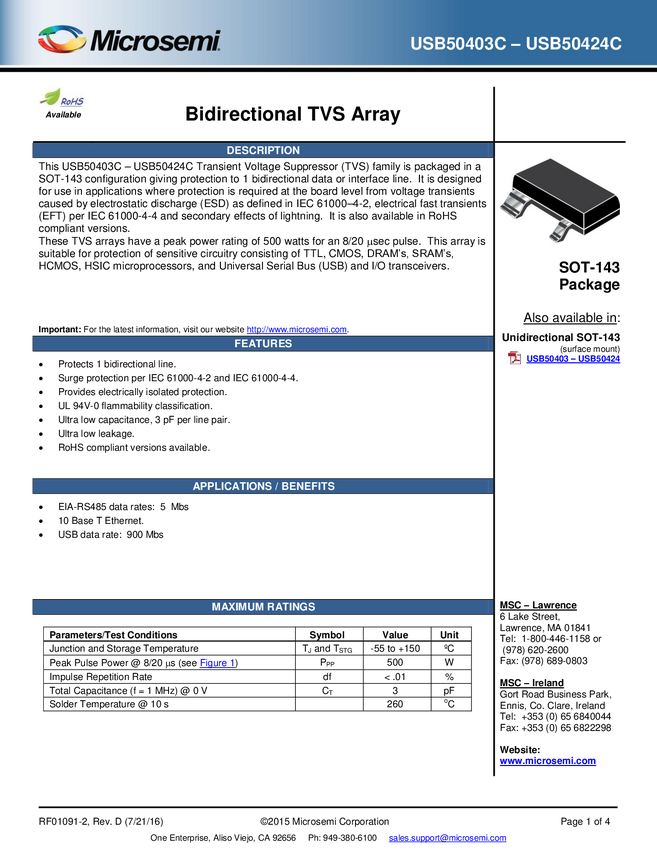 USB50415C-e3, USB50412C-e3, USB50405C-e3, USB50403C-e3