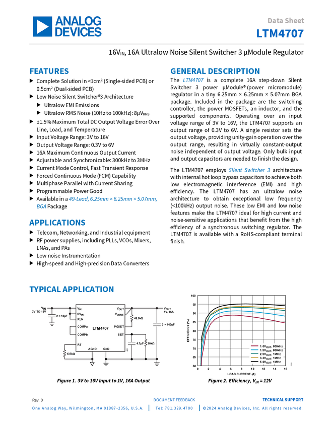 LTM4707 16V, 16A Ultralow Noise Silent Switcher 3 μModule Regulator