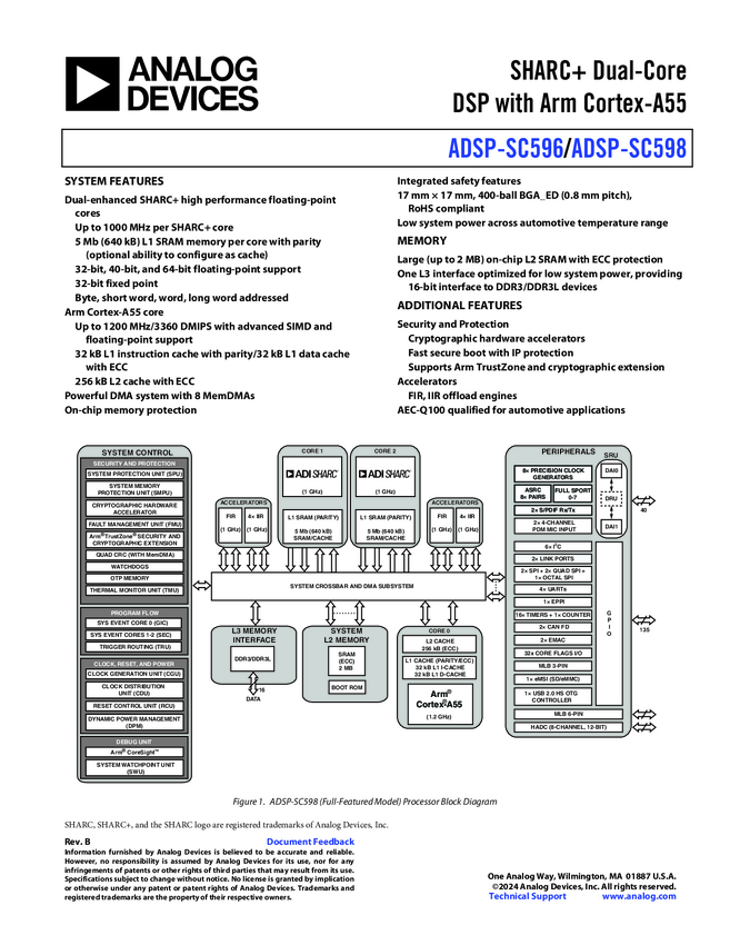 ADSP-SC596 1 GHz SHARC+ DSP w/ Integrated Arm Cortex-A55