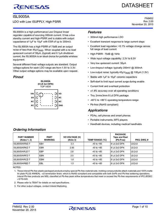 ISL9005AIRBZ-T, ISL9005AIRCZ-T, ISL9005AIRFZ-T, ISL9005AIRJZ-T, ISL9005AIRKZ-T, ISL9005AIRLZ-T, ISL9005AIRMZ-T, ISL9005AIRNZ-T, ISL9005AIRRZ-T