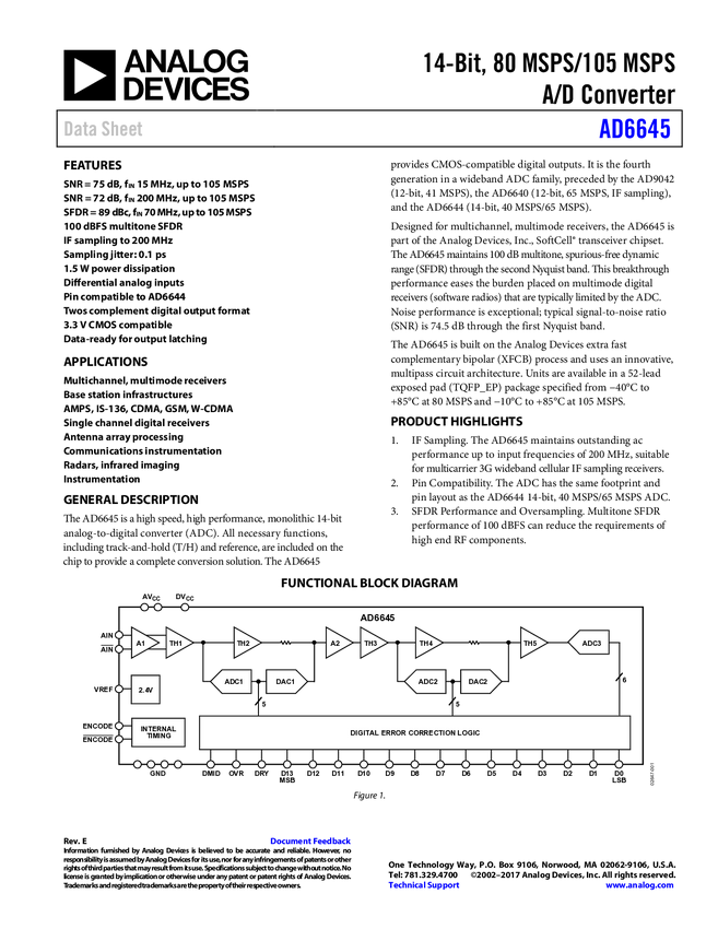 AD6645 14-Bit, 80 MSPS/105 MSPS A/D Converter