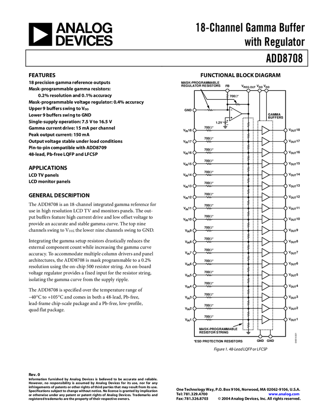 ADD8708 18 - Channel Gamma Buffer with Regulator