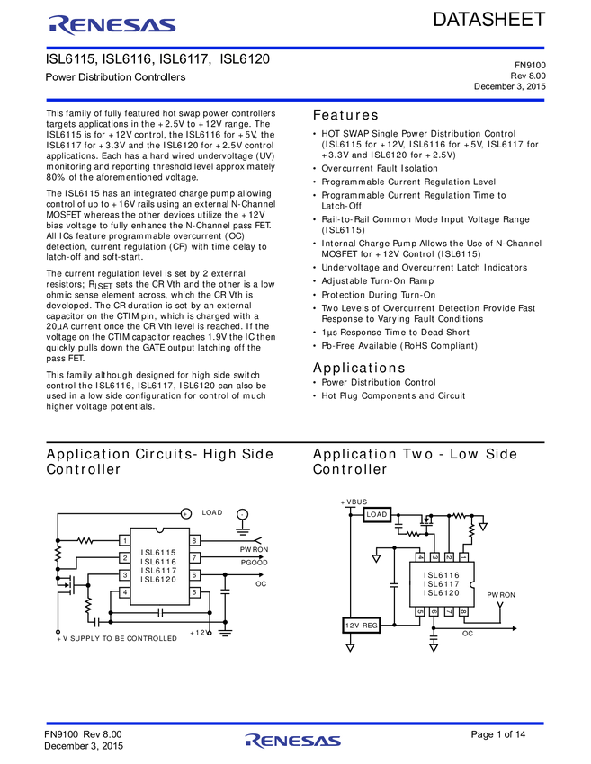 ISL6115 Power Distribution Controllers