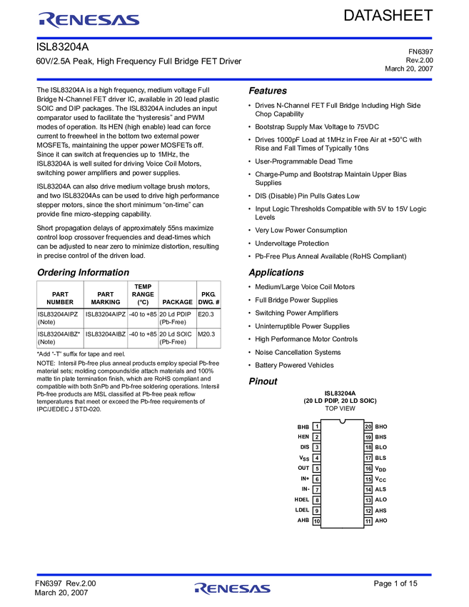 ISL83204AIBZ, ISL83204AIBZT, ISL83204AIPZ