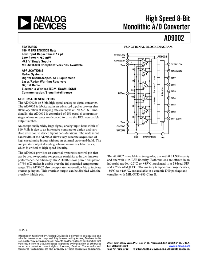 AD9002 High Speed 8-Bit Monolithic A/D Converter
