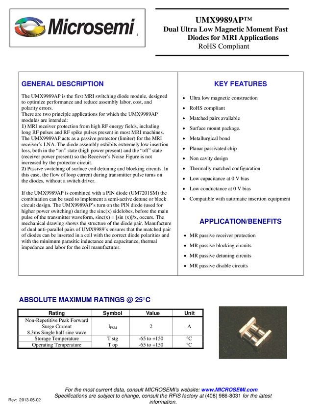 UMX9989-LowMag-MELF-Fast-MRI-PIN UMX9989AP Dual Ultra Low Magnetic Moment