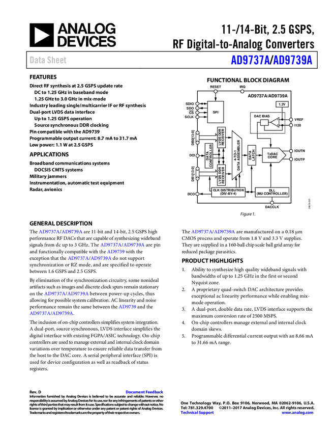 AD9739A 11-Bit, 2.5 GSPS, RF Digital-to-Analog Converter