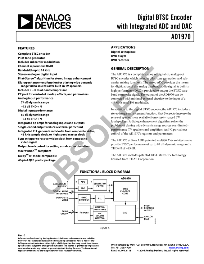 AD1970 Complete MTS (BTSC) TV Stereo Encoder