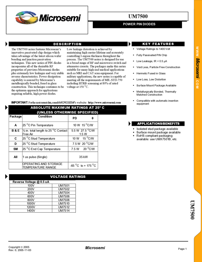UM7500-General-Purpose-PIN Power PIN Diodes UM7501 - 7514