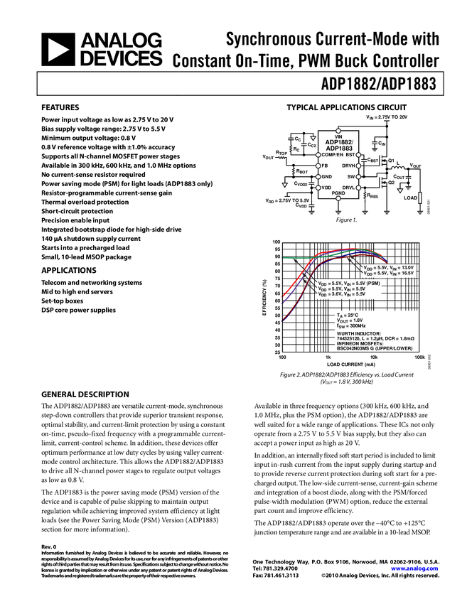 ADP1883 Synchronous Current-Mode Buck Controller with Constant On-time and 0.8 V Re...
