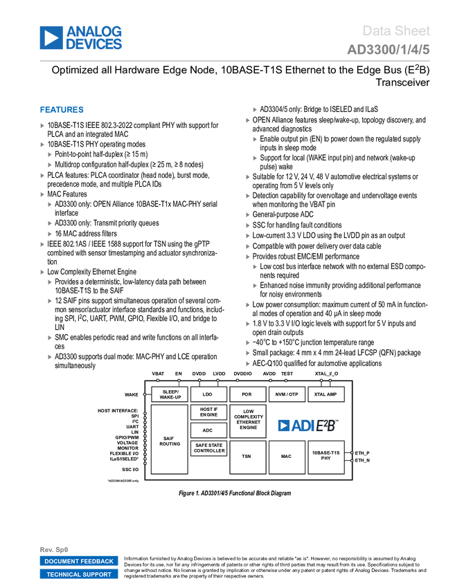 AD3300 10BASE-T1S Ethernet to the Edge Bus (EB) Transceiver