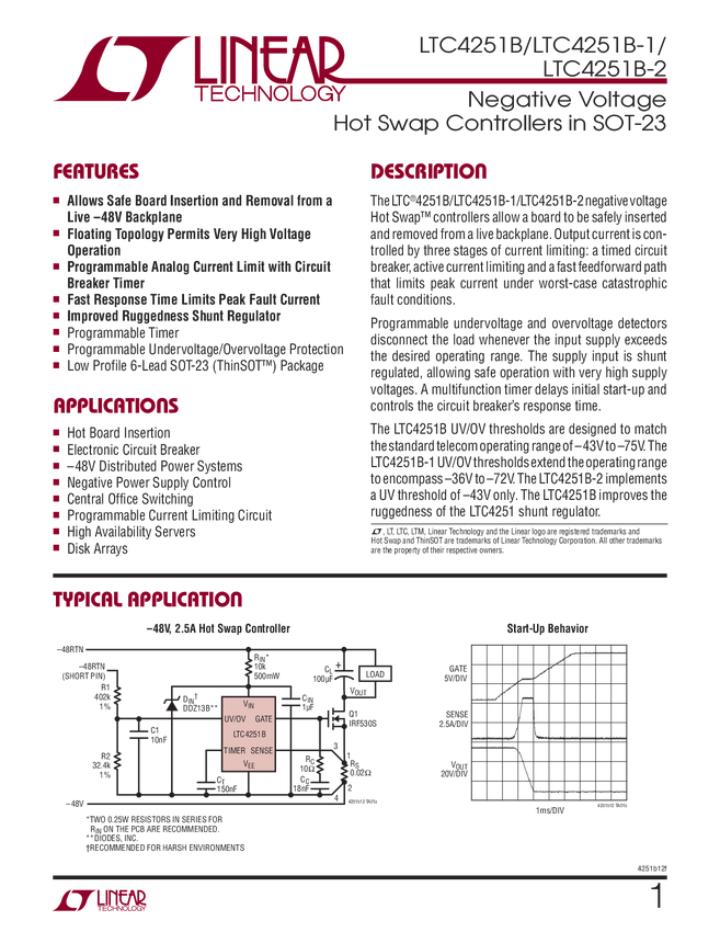 LTC4251B Negative Voltage Hot Swap Controllers in SOT-23
