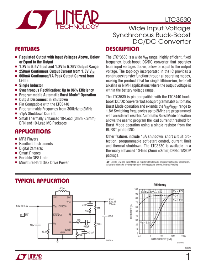 LTC3530 Wide Input Voltage Synchronous Buck-Boost DC/DC Converter