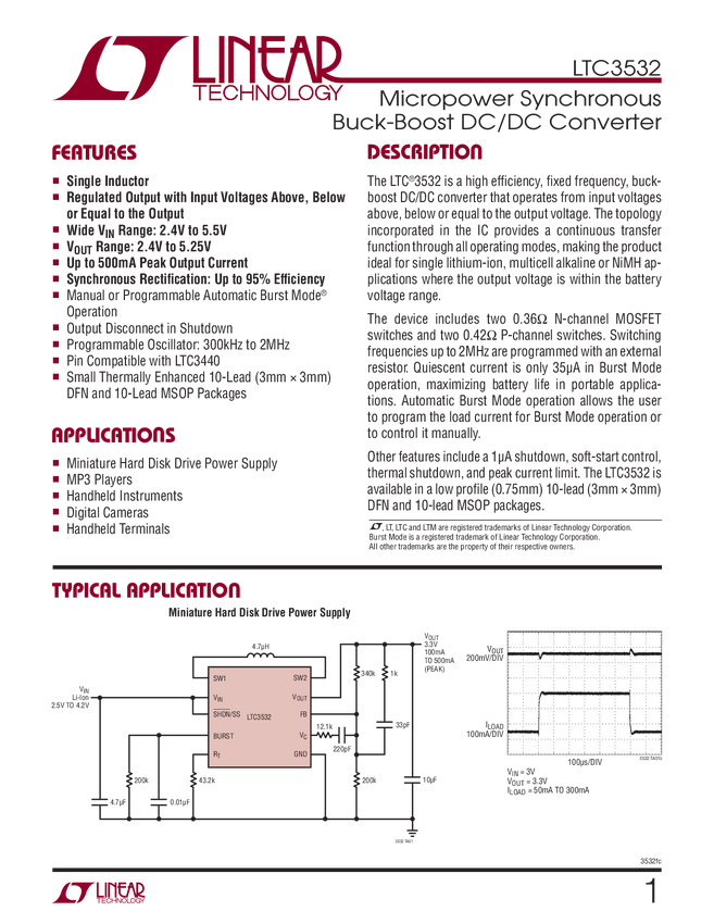 LTC3532 Micropower Synchronous Buck-Boost DC/DC Converter