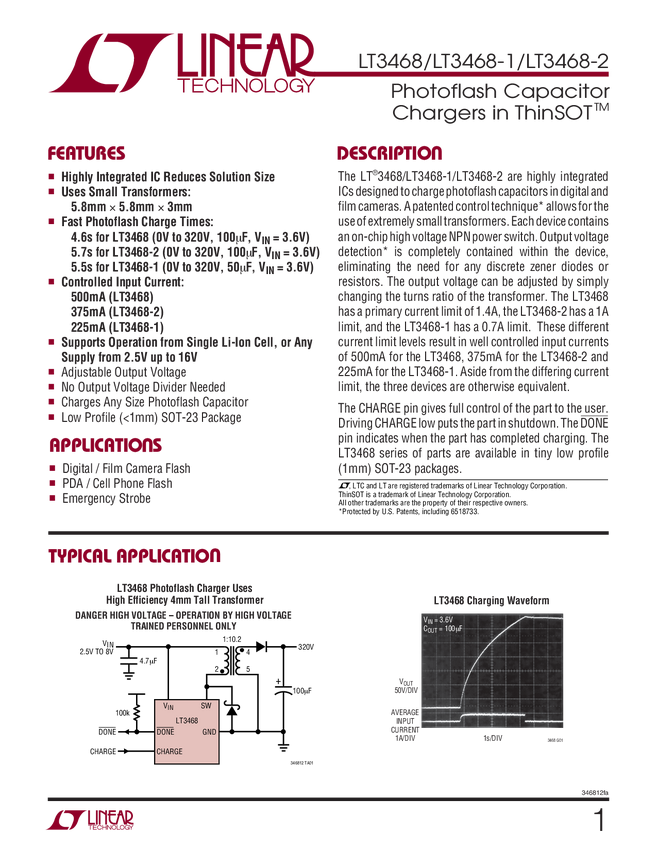 LT3468 Photoflash Capacitor Chargers in ThinSOT