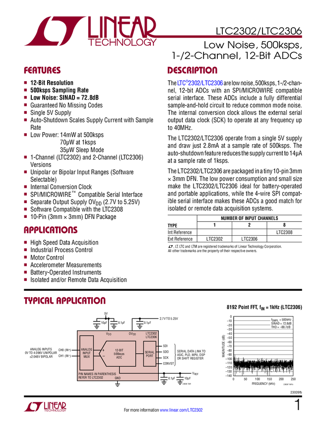 LTC2306 Low Noise, 500ksps, 2-Channel, 12-Bit ADC