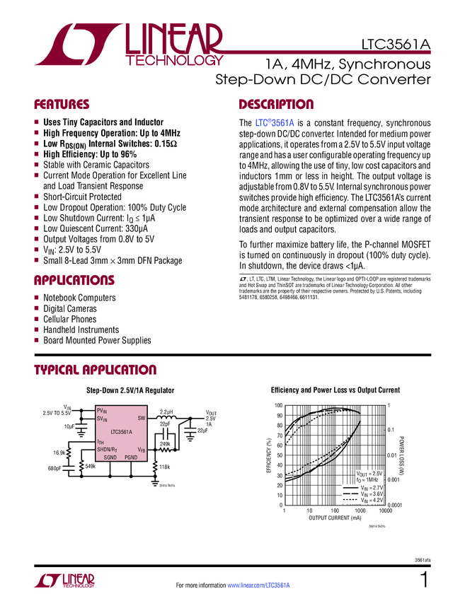 LTC3561A 1A, 4MHz, Synchronous Step-Down DC/DC Converter