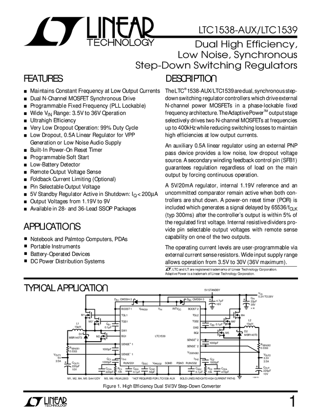LTC1538-AUX Dual High Efficiency, Low Noise, Synchronous Step-Down Switching Regulators