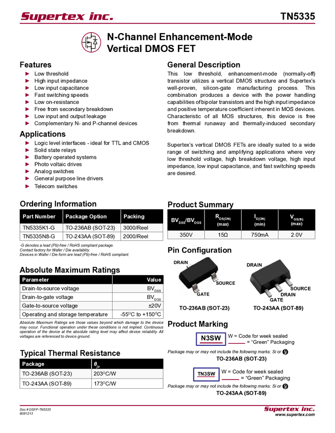 TN5335 Datasheet - N-Channel Enhancement-Mode Vertical DMOS FET
