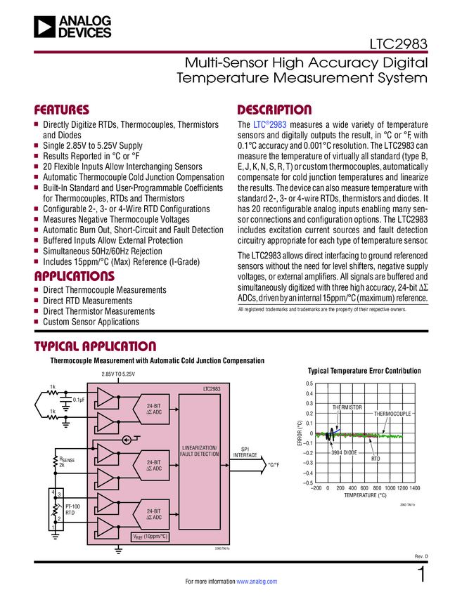 LTC2983 Multi-Sensor High Accuracy Digital Temperature Measurement System