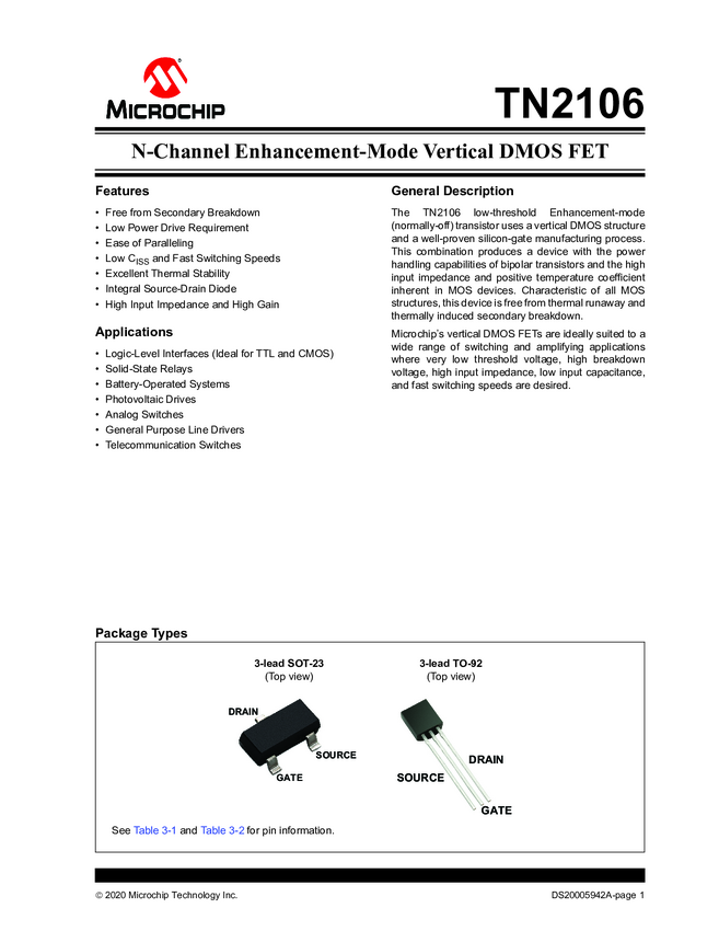 TN2106 N-Channel Enhancement-Mode Vertical DMOS FET Data Sheet