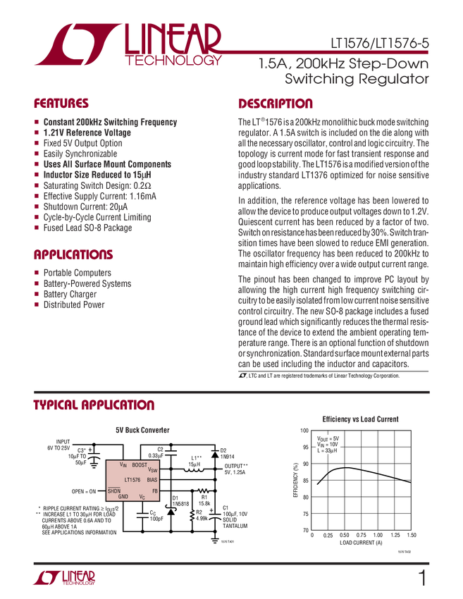 LT1576 1.5A, 200kHz Step-Down Switching Regulator