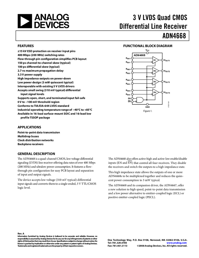 ADN4668 3 V LVDS Quad CMOS Differential Line Receiver