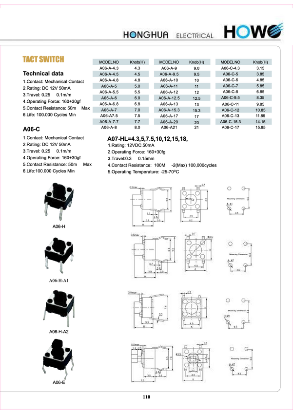 Mikroprzycisk; 3x6mm; 5mm; 1,5mm; THT; 2 pin; czarny; OFF-(ON); 50mA; 12V DC; 180gf; Howo; TACTM-35N-F; tact switch; RoHS; opakowanie/100szt