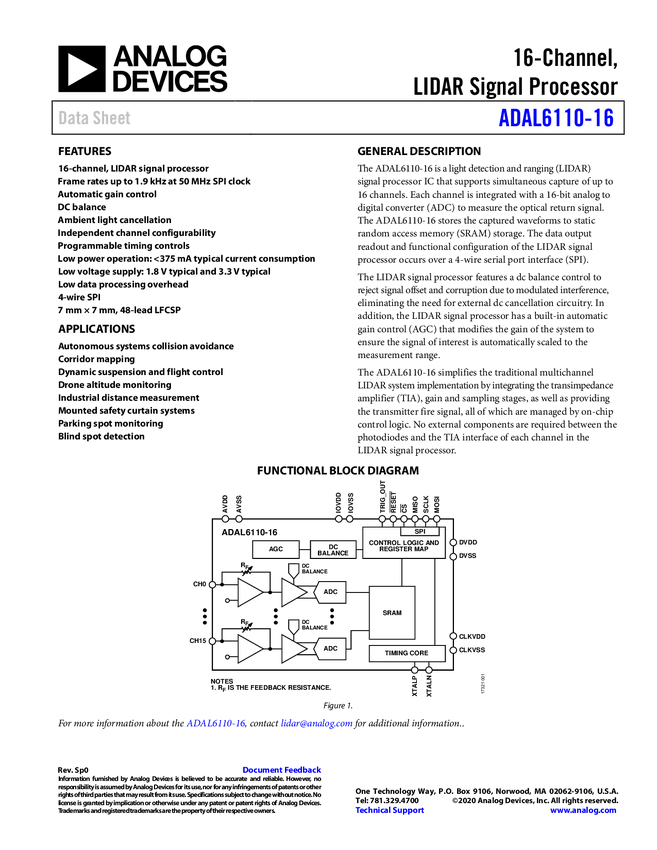 ADAL6110-16 16-Channel, LIDAR Signal Processor