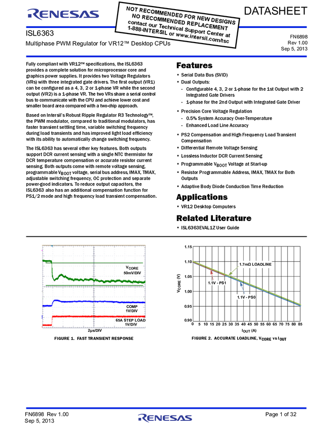 ISL6363 Multiphase PWM Regulator for VR12 Desktop CPUs