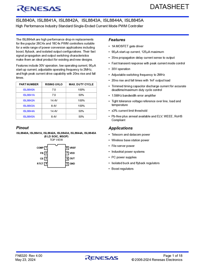 - ISL8843AABZ, ISL8843AABZ-T, ISL8843AAUZ, ISL8843AAUZ-T, ISL8843AMBZ, ISL8843AMBZ-T, ISL8843AMUZ, ISL8843AMUZ-T
