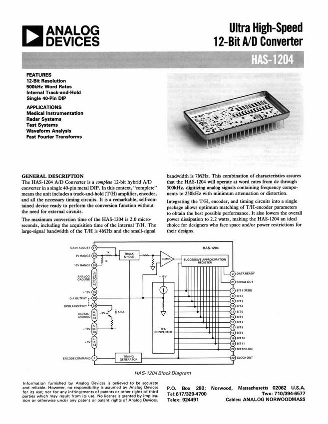 HAS-1204 Ultra High-Speed 12-Bit A/D Converter