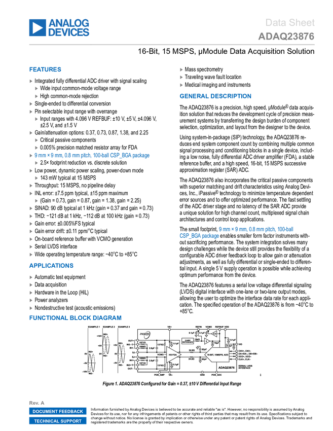 ADAQ23876 16-Bit, 15 MSPS, μModule Data Acquisition Solution