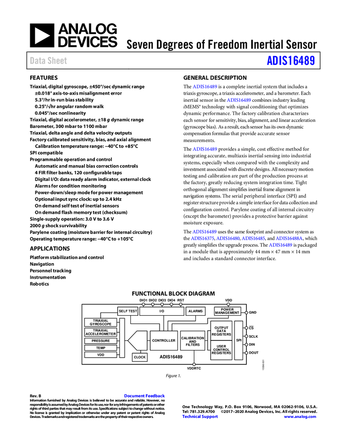ADIS16489 Seven Degrees of Freedom Inertial Sensor