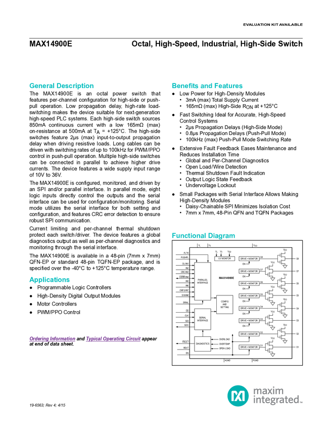 MAX14900E Octal, High-Speed, Industrial, High-Side Switch