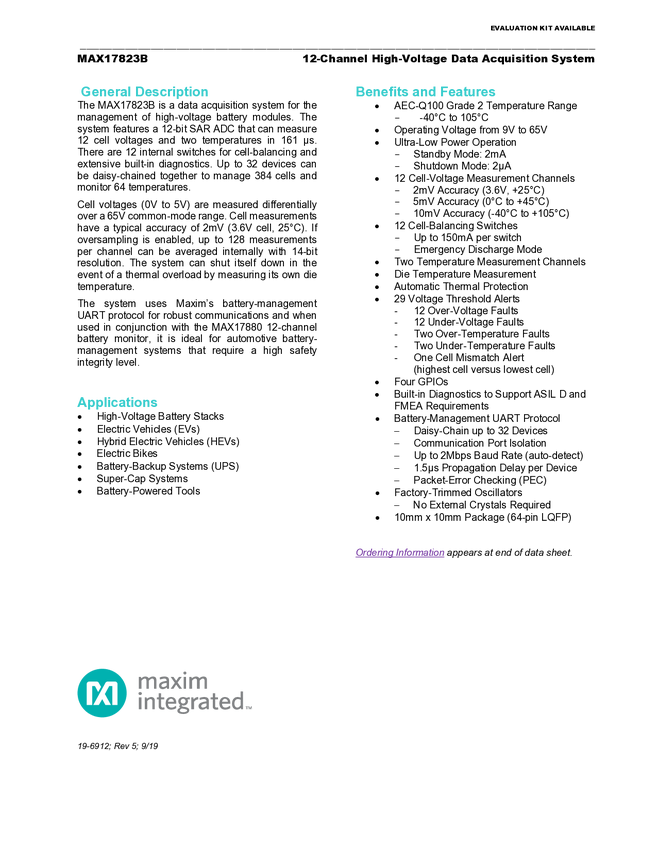 MAX17823B 12-Channel High-Voltage Data Acquisition System