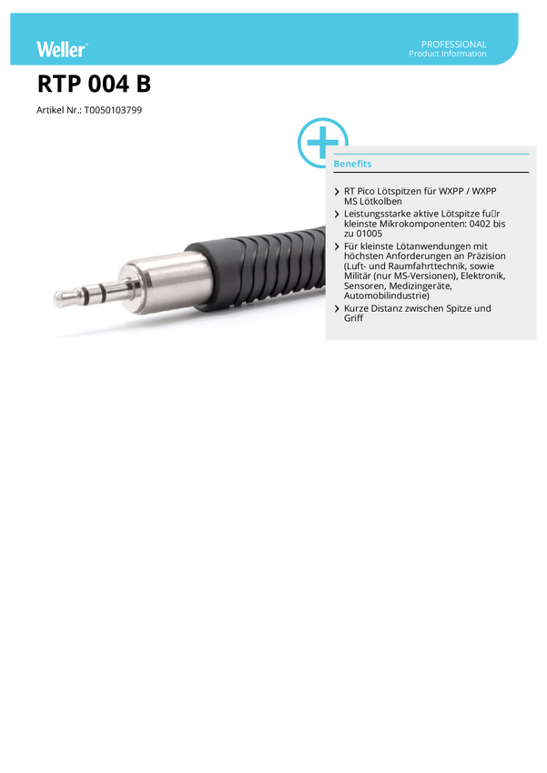 T0050103799 Grot lutowniczy Weller RTP 004 B T0050103799 1 szt.