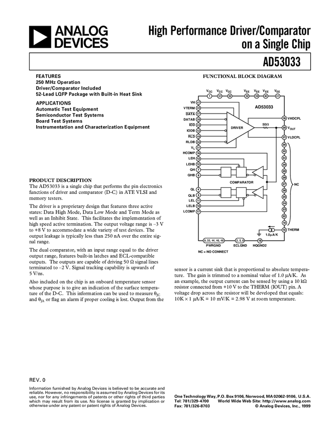 AD53033 DRIVER/COMPARATOR: High Performance Driver/Comparator on a Single Chip