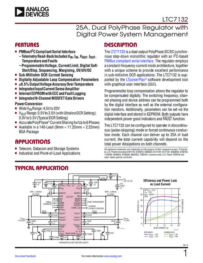 LTC7132 25A, Dual PolyPhase Regulator with Digital Power System Management