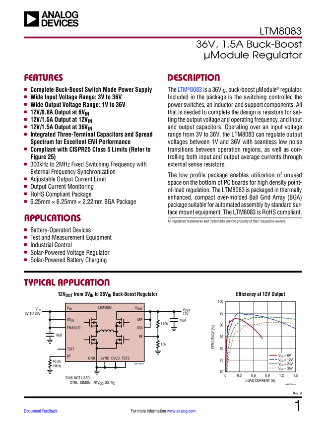 LTM8083 36V, 1.5A Buck-Boost μModule Regulator