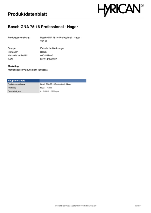 0601529400 Rozdzierak GNA 75-16 Bosch Professional Bosch Power Tools 0601529400