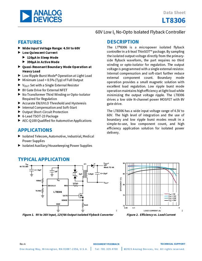 LT8306 60V Low I No-Opto Isolated Flyback Controller